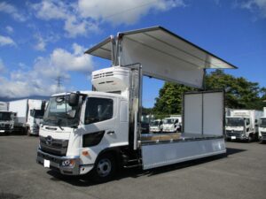 ベット付ワイドキャブ/トランテックス製冷凍車/冷凍機 菱重TDJS50J/新明和製格納パワーゲート付/パワーゲートラジコン付/床アルミ縞張/サイドドア観音開き/サイドドア開口幅1800mm/ラッシングレール2段/断熱ALL75mm/リヤエアサス/荷台内寸 L6260W2250H2200/燃料タンク200L1個/バックアイカメラ付/240PS/6MT